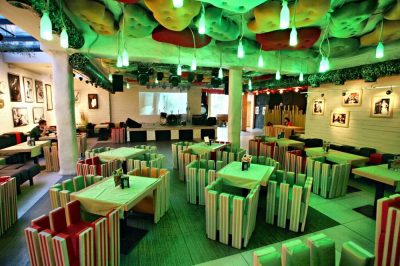 Повара арт – кафе Корова замечательно готовят блюда европейской, японской, украинской и авторской кухни. Закуски, пицца и пиво станут прекрасным дополнением к праздничной атмосфере. Интерьер заведения так и завораживает: хорошее расположение столиков, качественная музыкальная аппаратура, правильно подобранное освещение. Посетители могут удобно разместиться в одном из 4 залов.  Отрывайтесь на огромной танцевальной площадке под любимые мелодии.